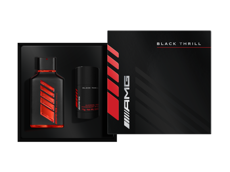 Each THRILL variant was created by master perfumer Fabrice Pellegrin and is based on one of the core components of the AMG universe – SILVER for technology, BLACK for luxury and RED for passion. The three fragrances are characterised by carefully selected ingredients and original and bold compositions.