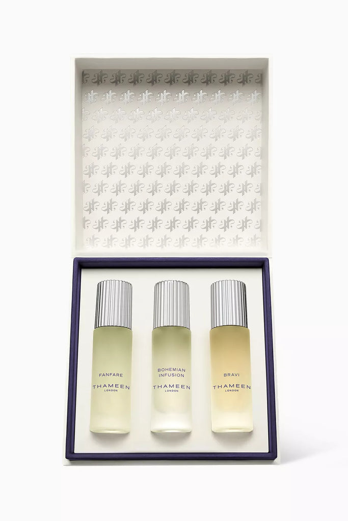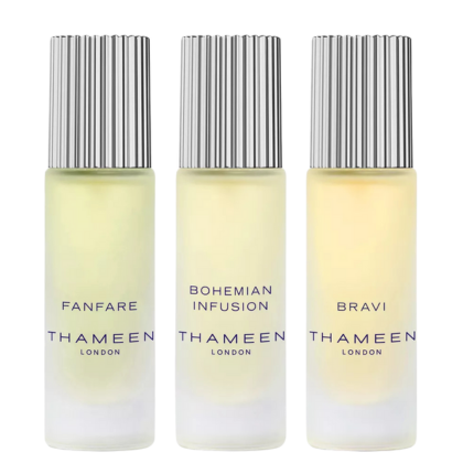 Thameen's Britologne Discovery Set, blending 'British' and 'cologne,' showcases three distinct fragrances: Fanfare, Bohemian Infusion, and Bravi. Each scent pays homage to one of London's most iconic landmarks, Covent Garden. For instance, Fanfare captivates with its notes of lemon, a flower market accord, and patchouli, encapsulating the vibrant essence of the bustling Flower Market.