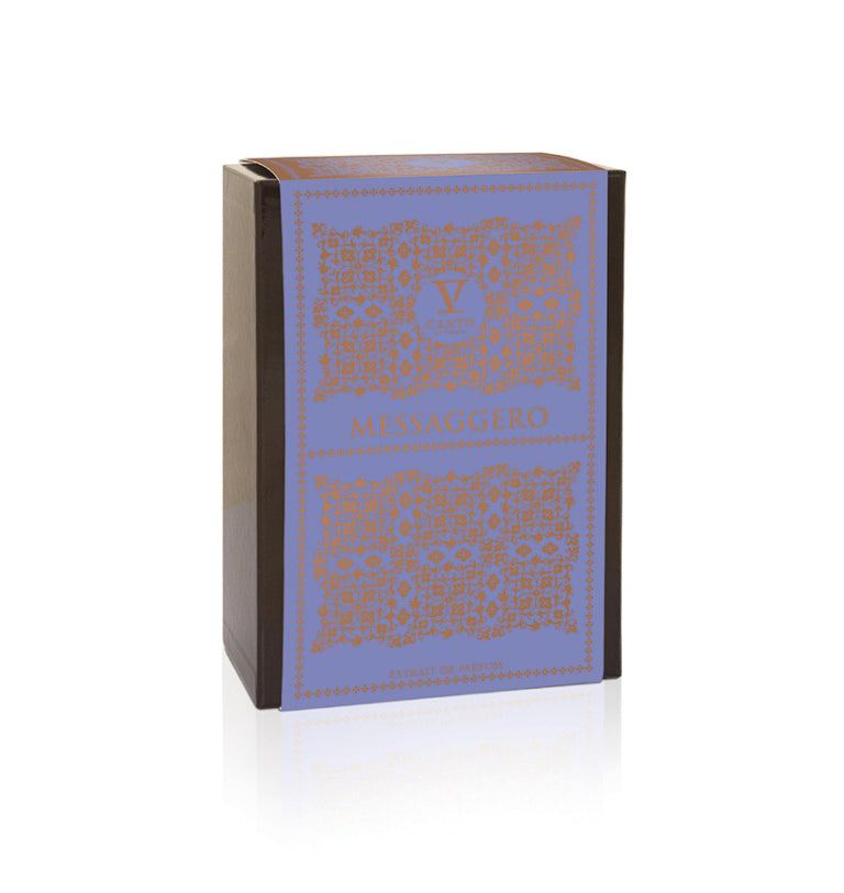 Within the Court of Gradara we find another figure, telling ancient and timeless tales: the Messenger, responsible for delivering the Court’s messages with the utmost discretion and care. A lone hero who traversed multiple kingdoms, often taking routes and paths strewn with danger. The creation inspired by this figure invites the wearer to embark on a timeless journey through life’s adversities with courage and determination, driven by the will to face any danger. The fragrance opens with the seductive scent of intoxicating Bulgarian Rose, balanced by the freshness of Sicilian Grapefruit and the depth of Omani Incense. This persuasive head rests lasciviously on a bed of citrus and aphrodisiac flowers, Violet Leaves bring a delicate touch while Milky Lactone and Thai Coconut provide an enveloping sweetness. The strength of this creation is based on a warm, sensual base; the deafening silence of Musk envelops Singapore Patchouli, while Coumarin, Madagascar Vanilla and Turkish Caramel release sweetness. Messaggero (the Italian word for messenger) is a thousand-year journey through time and space, at the end of which the only constant is the wonder of being amazed.