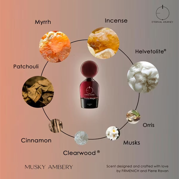 The warmth of the day is cooling off and it is time to energize our Mind, Body and Soul for the night. The brightness of the day turns to Sunset, the rhythm of the day fades as the music raises. A true invitation to escape reality. Thoughts wander to the essential questions of life. A scent to create a Harmony around us and to infuse power. In this fragrance, incense wisps act as the guiding thread of our thoughts.