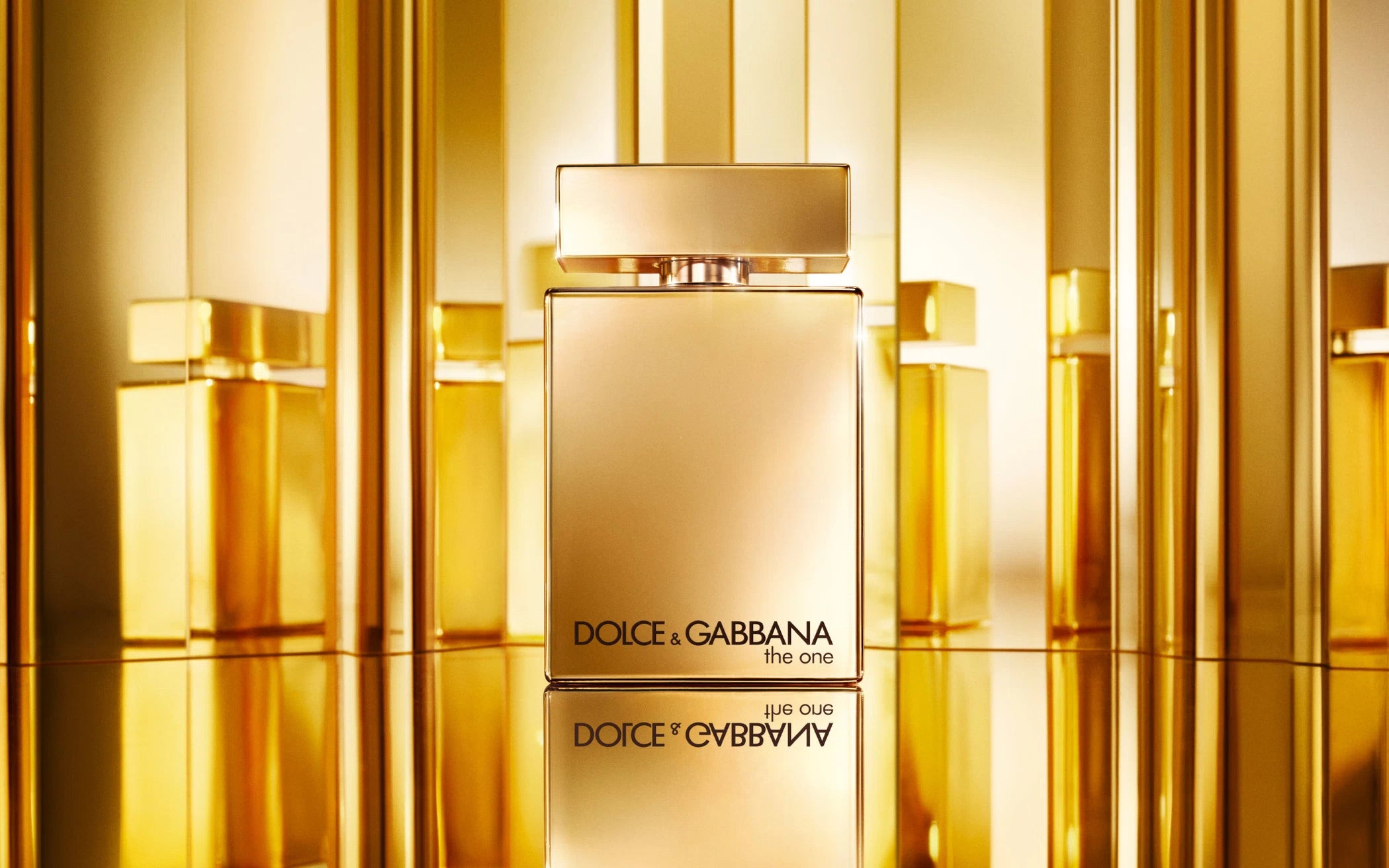 The Dolce&Gabbana The One for Men Gold Eau de Parfum Intense bottle design reimagines the essential lines of the original bottle, adorned with a striking gold lacquer.