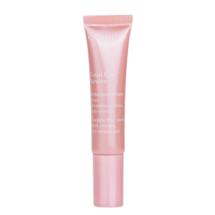 This cream-gel eye treatment is enriched with a blend of natural ingredients including antioxidant-rich Teasel extract and Myrothamnus to target fine lines, revive the eye area, and visibly minimize signs of stress and fatigue. Illuminating pigments optically blur fine lines to provide an instant, visibly brightening effect. The ultra-cold metal applicator tip enhances drainage to help reduce the appearance of puffiness and dark circles.Total Eye Revive, formerly Multi-Active Eye, is Clarins' expert eye solution for dark circles and first lines—now with a refreshed, new look.