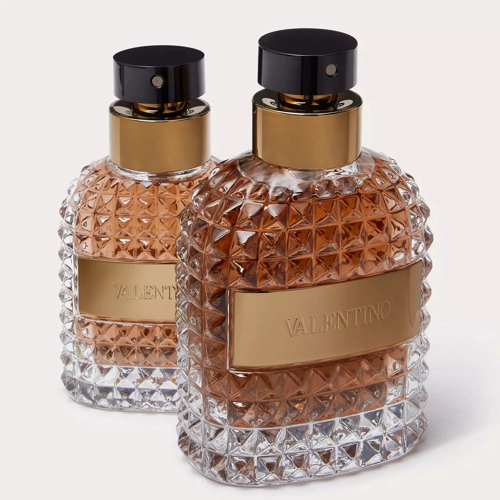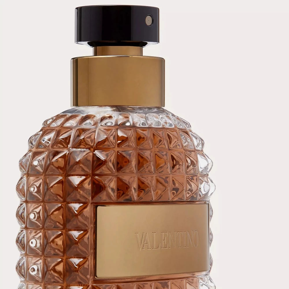 The bottle is designed with the iconic Valentino stud; inspired by Roma architecture which is the signature of Valentino Couture.